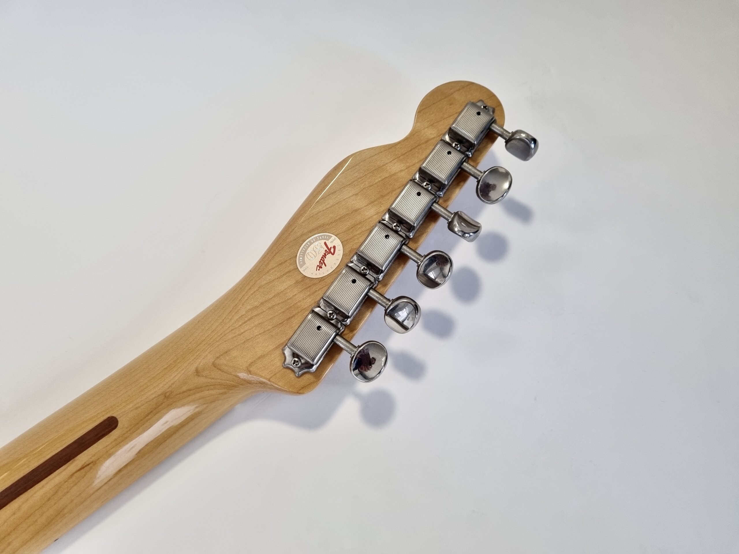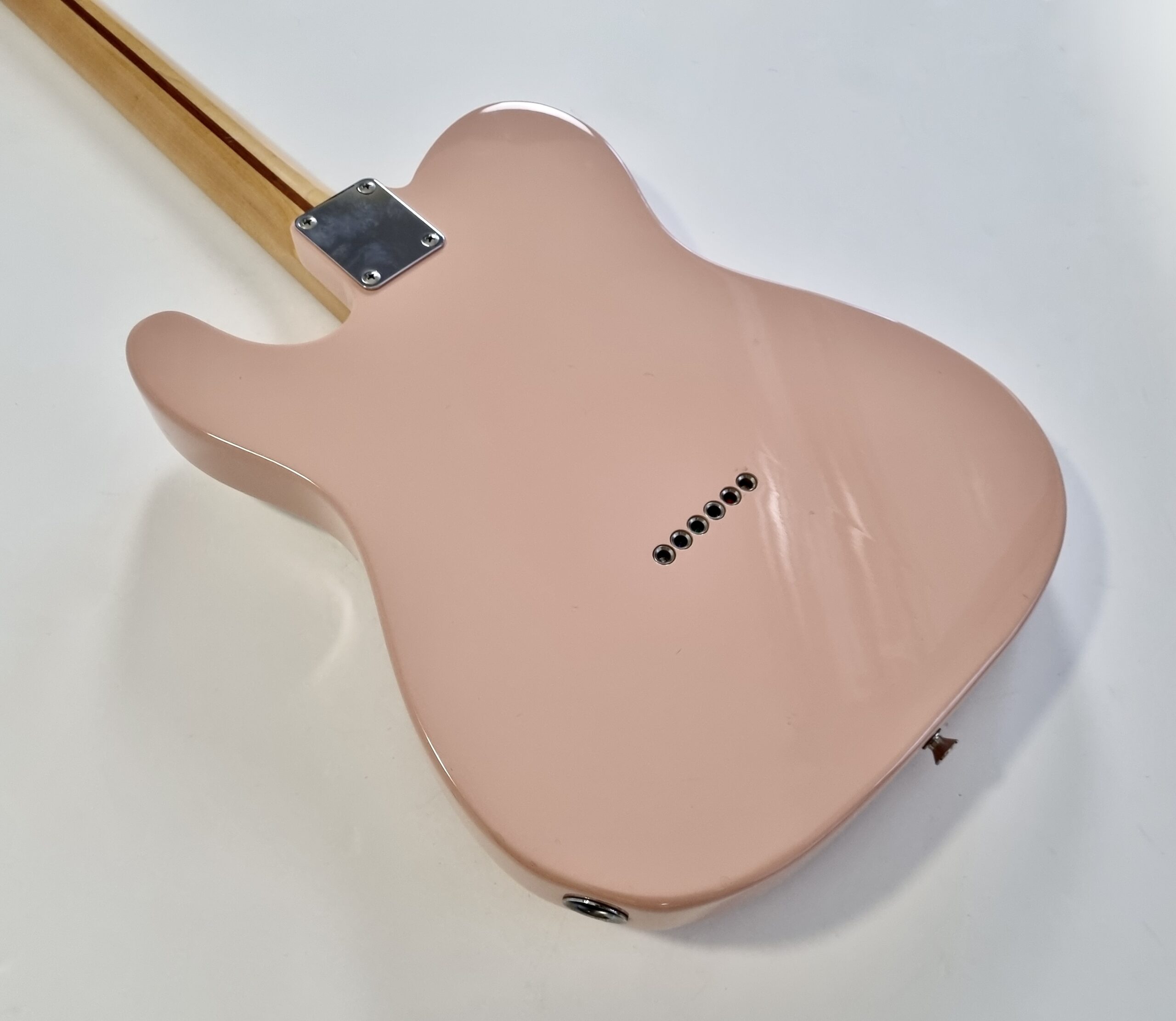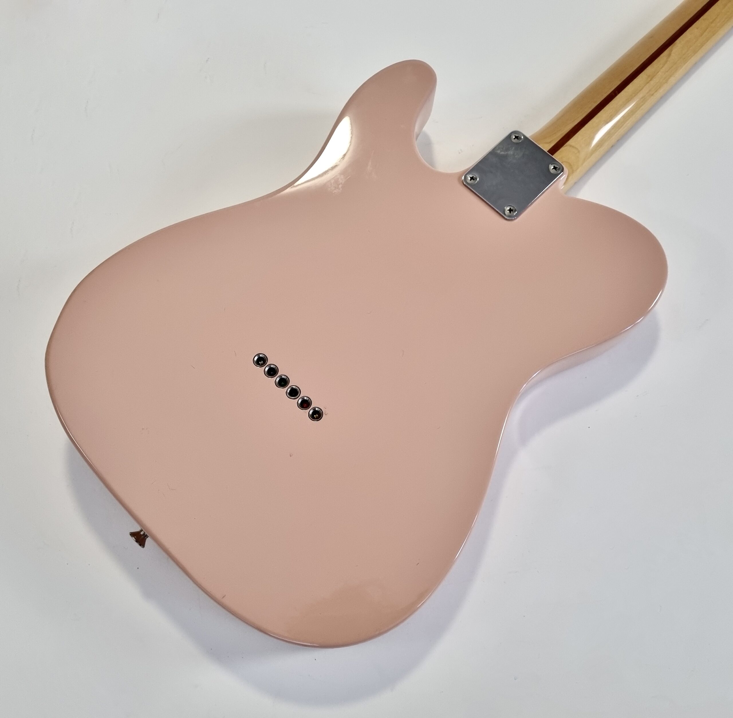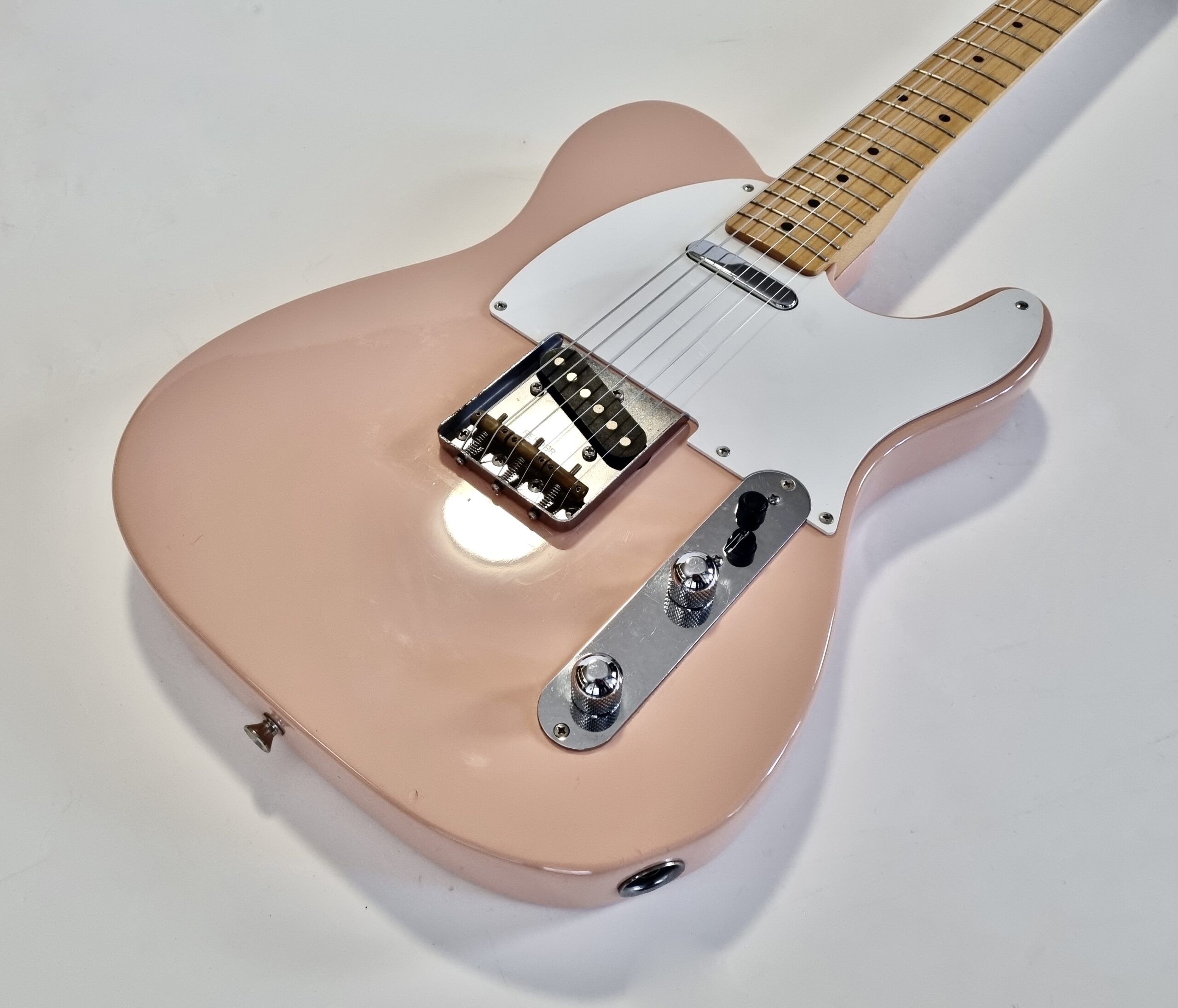 Cette Tele est un oiseau rare ! Produite pour le 50ème anniversaire de la marque elle est d’une couleur peu commune… Shell Pink ! C’est commun aux guitares made in Japan, la lutherie est excellent et l’assemblage sans faille ! Cette guitare légère de 3,32kg a un manche en V vintage au radius de 7.25.