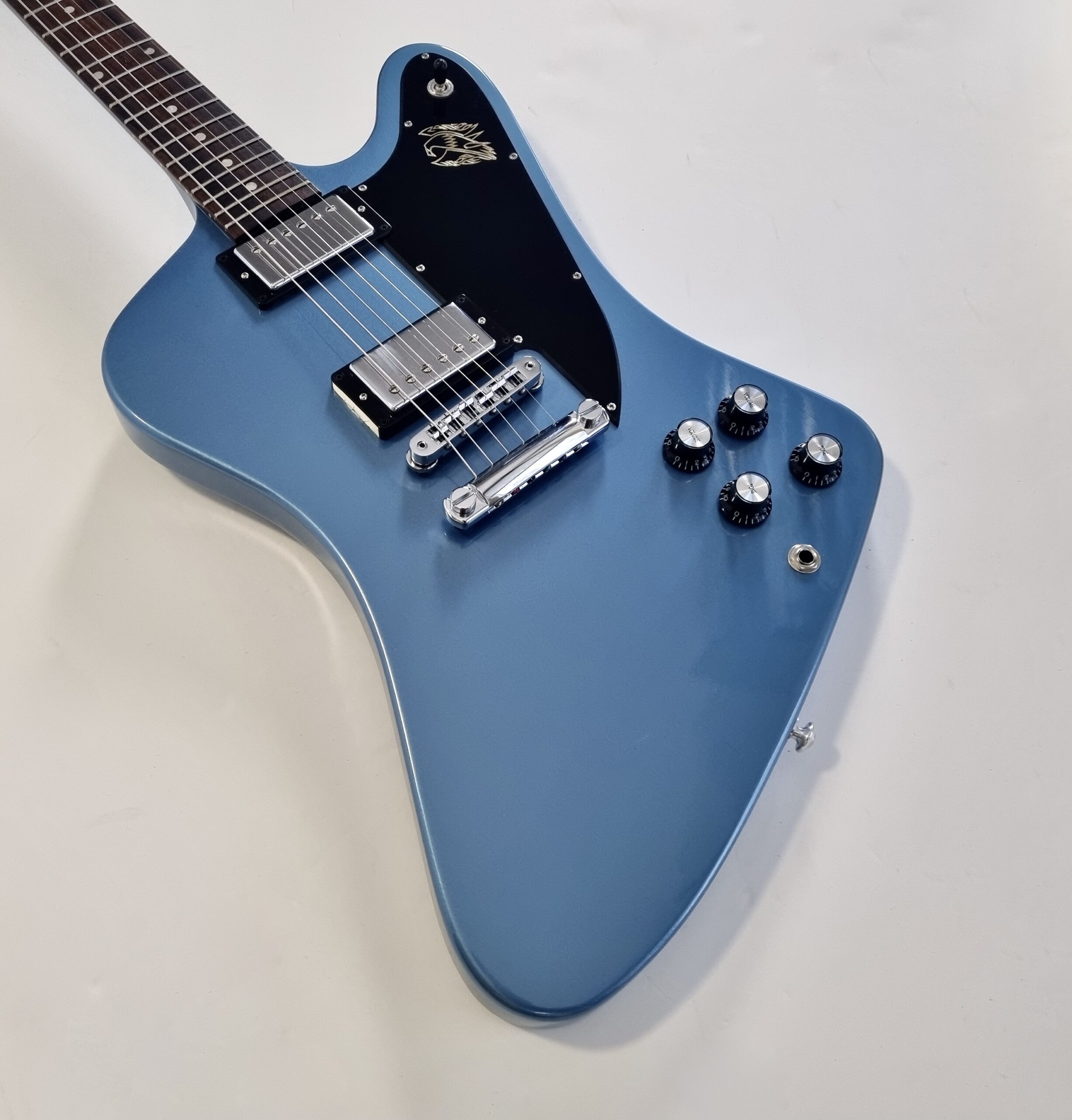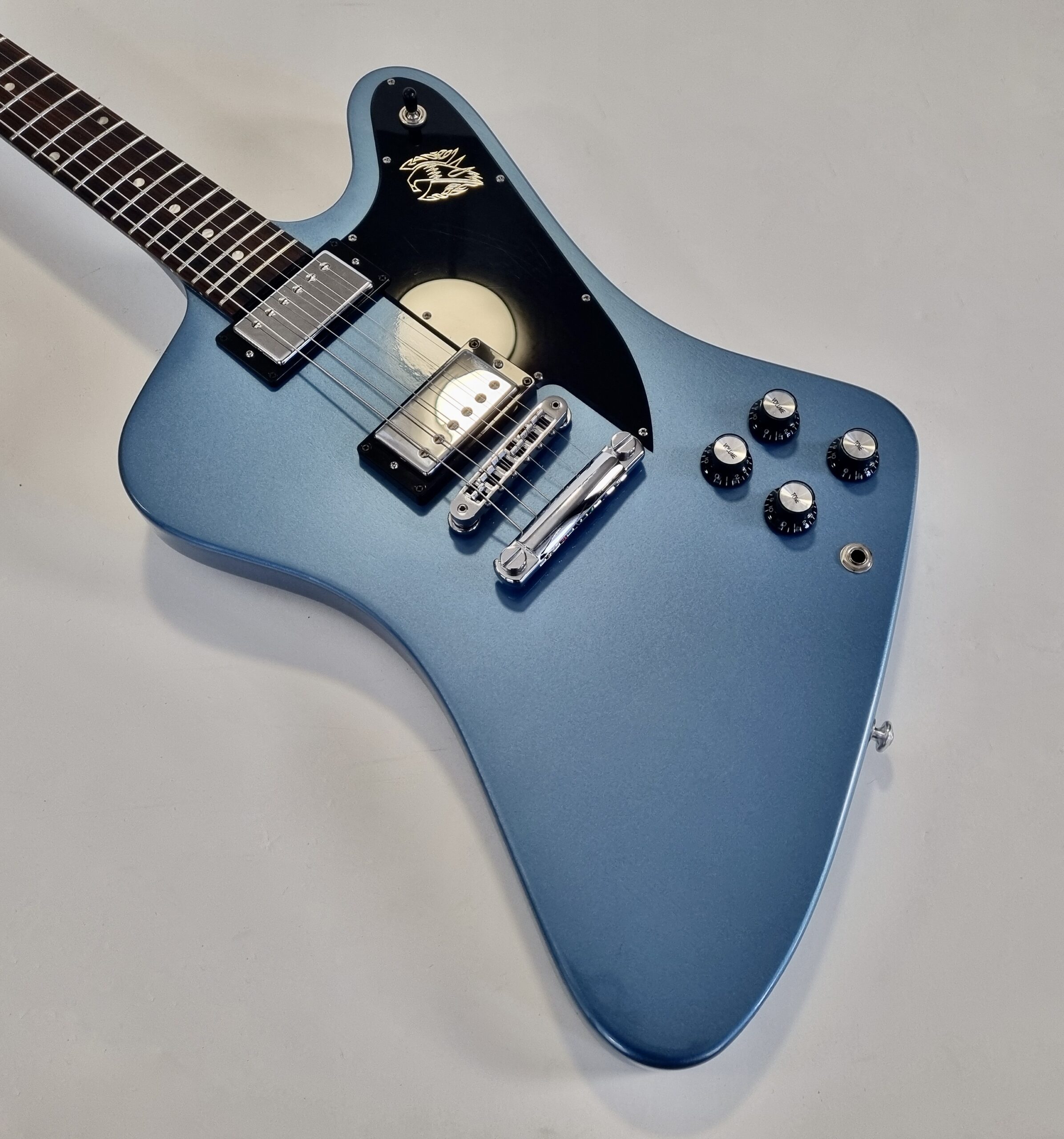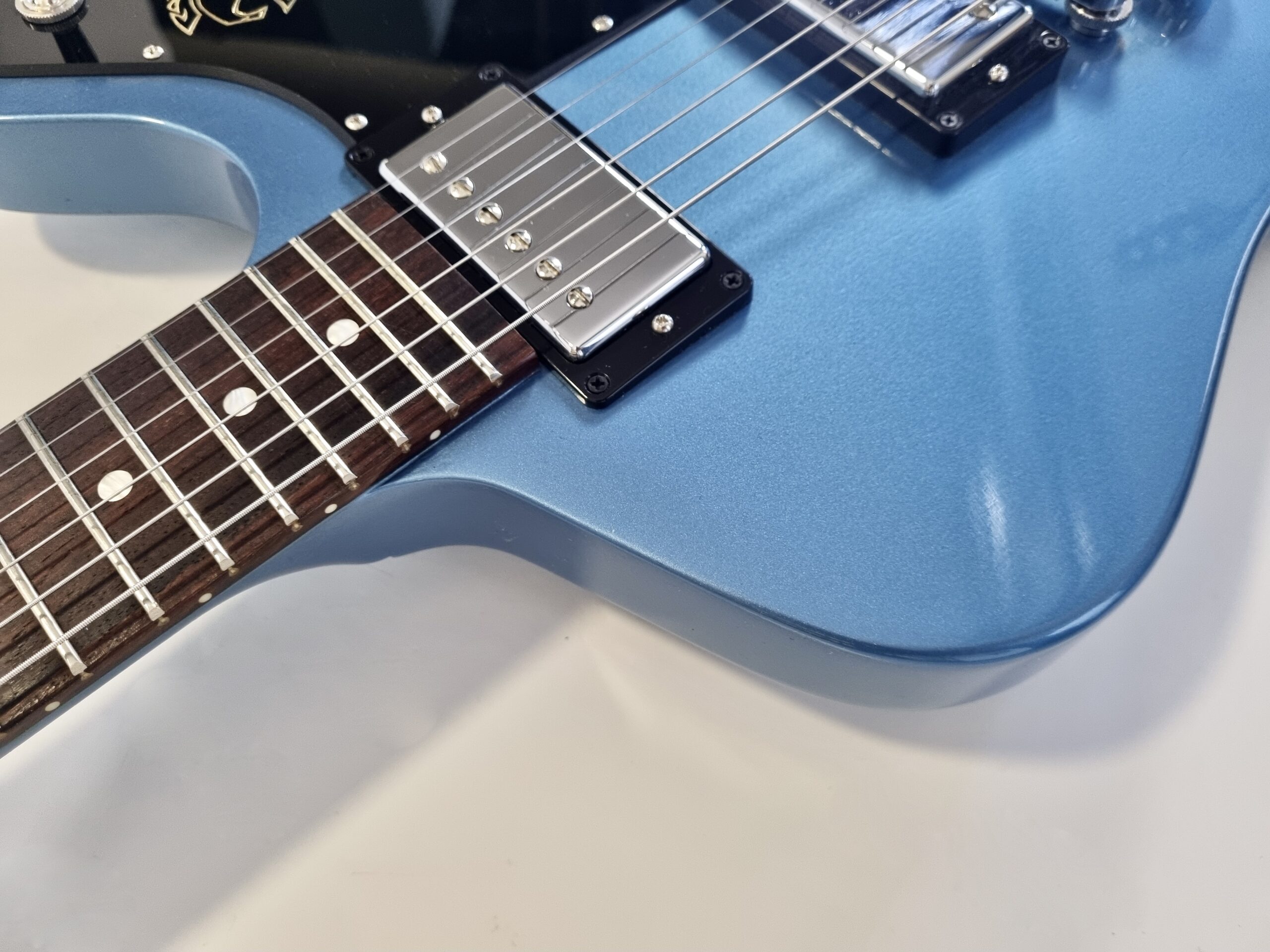 « L’oiseau de feu » est arrivé sur le marché en 1963, avec son look tapageur et son manche traversant, elle bouscule le paysage guitaristique. Ce modèle Studio de 2017 est doté d’une paire de humbuckers à aimants céramique : des 496 ! En très bon état, ne pèse que 2,89kg !