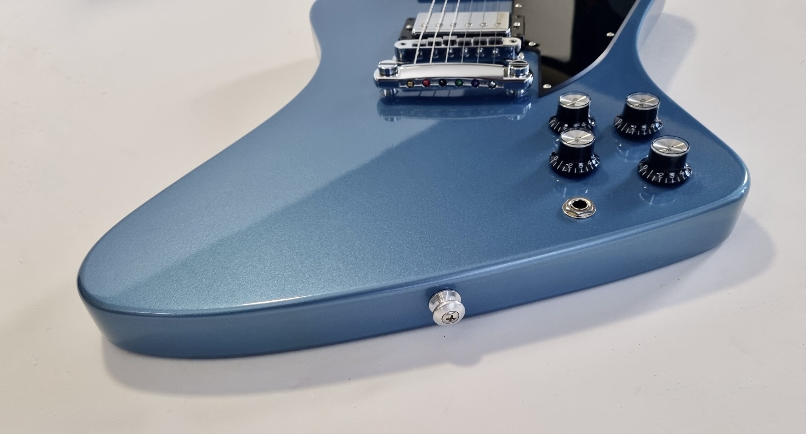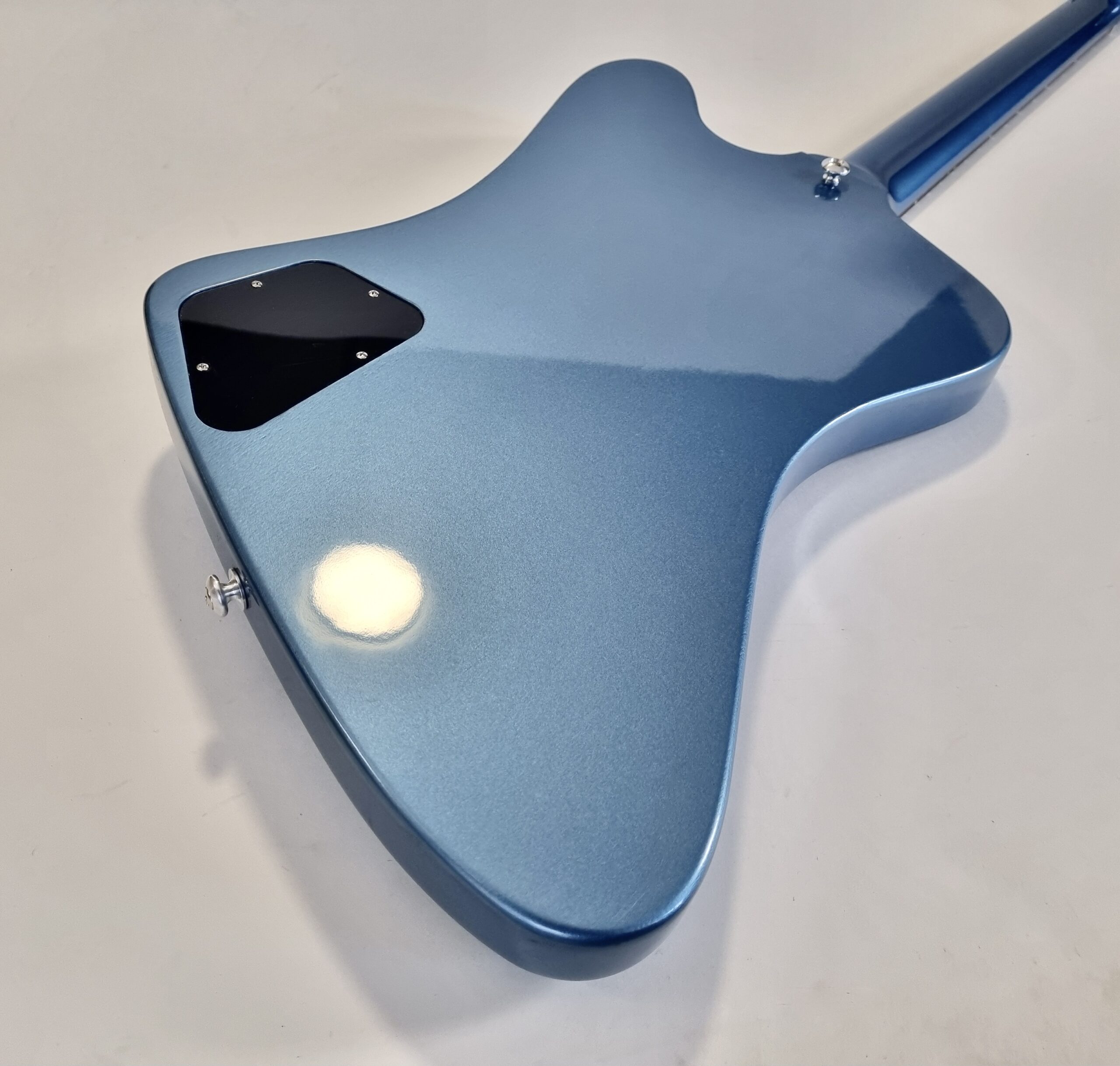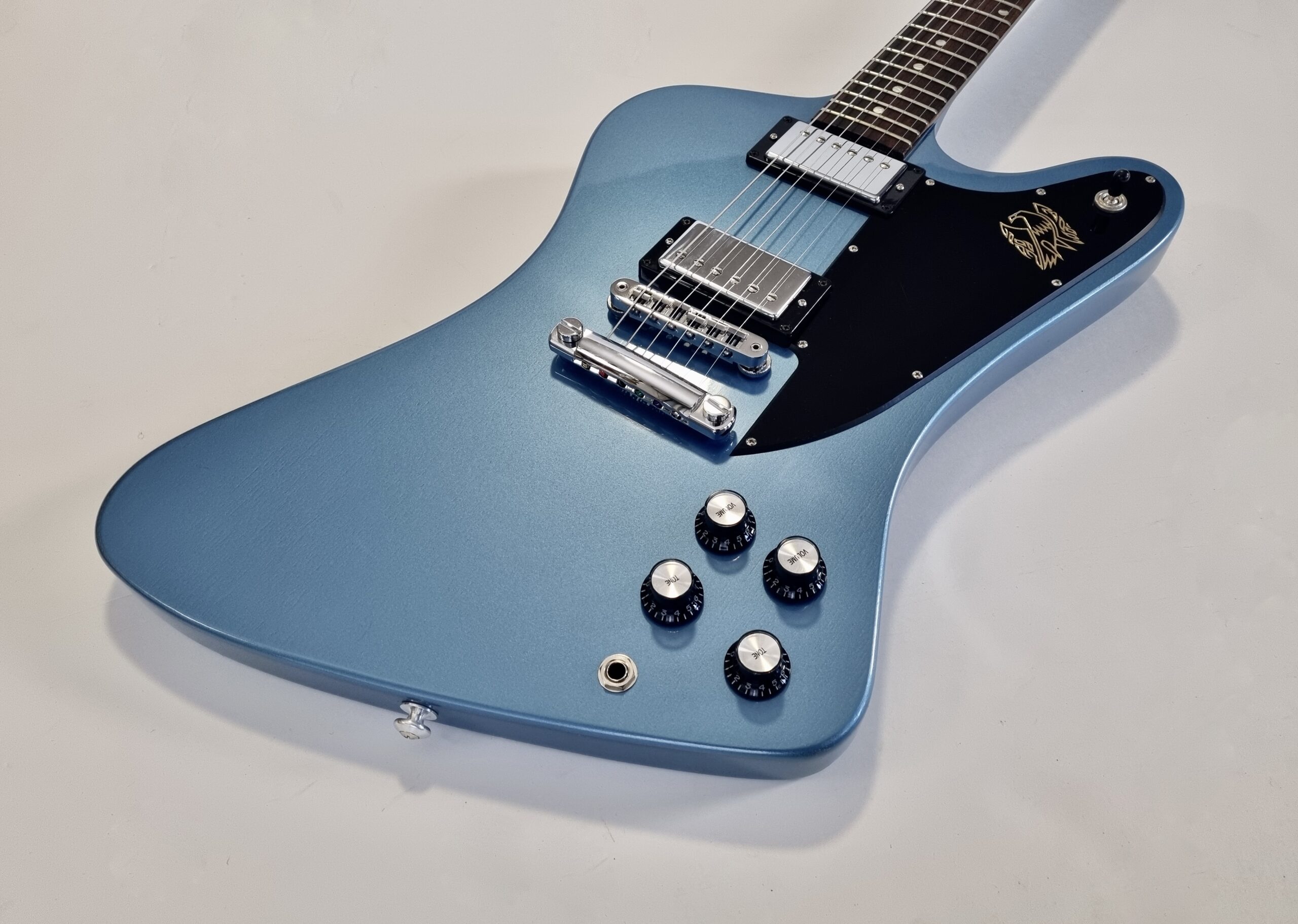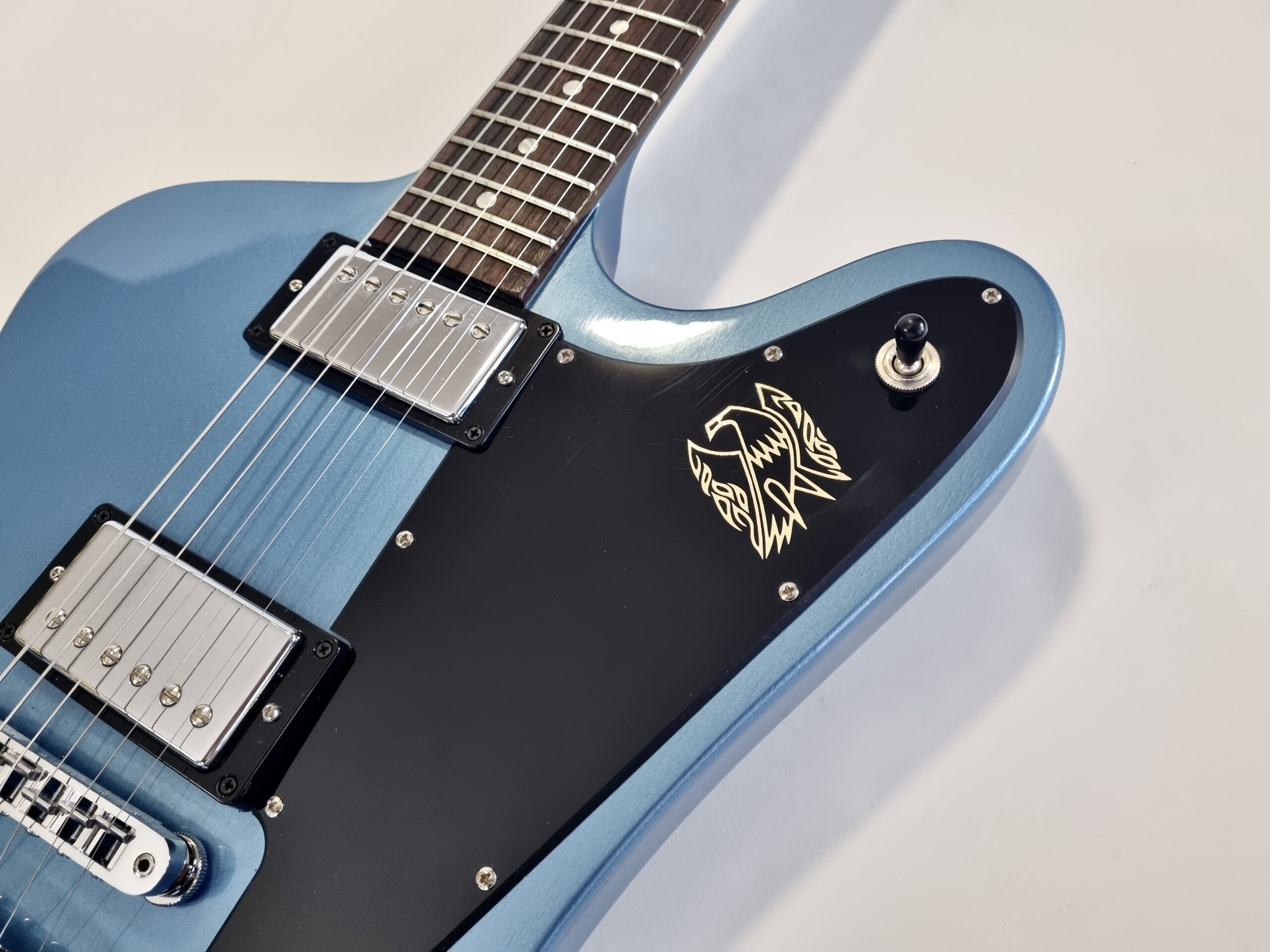 « L’oiseau de feu » est arrivé sur le marché en 1963, avec son look tapageur et son manche traversant, elle bouscule le paysage guitaristique. Ce modèle Studio de 2017 est doté d’une paire de humbuckers à aimants céramique : des 496 ! En très bon état, ne pèse que 2,89kg !